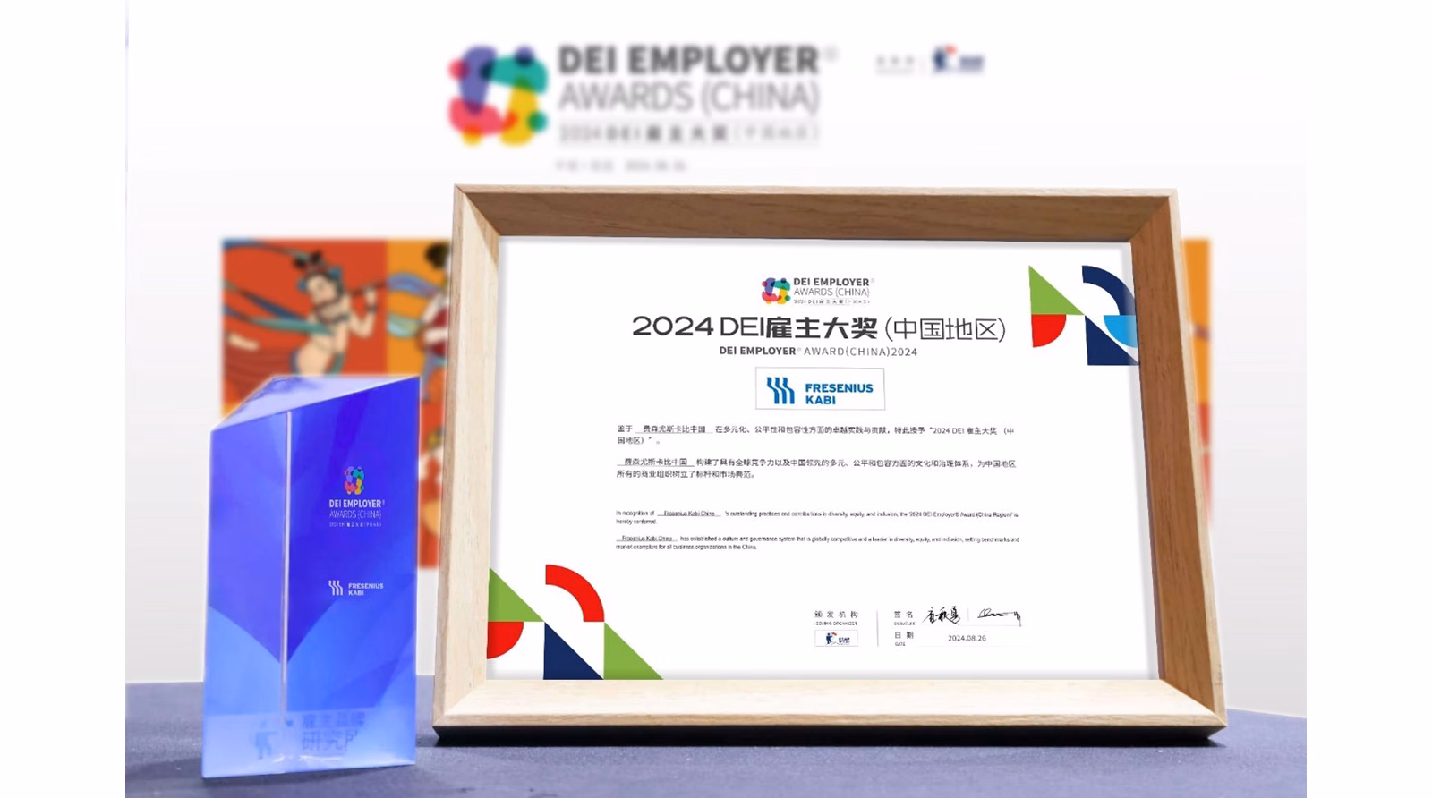 2024年8月26日,2024“DEI雇主大奖”DEI Employer® Awards (China)的主办方全球领先的雇主品牌研究机构-雇主品牌研究所(Employer Branding Institute)公布了中国地区的获奖企业,旨在表彰于多元、公平、包容领域取得卓越成就的雇主企业。费森尤斯卡比中国在来自50+个国家/地区的97个行业的635家国内外知名企业激烈的角逐中脱颖而出,荣膺中国首个多元、公平、包容方向的雇主大奖。